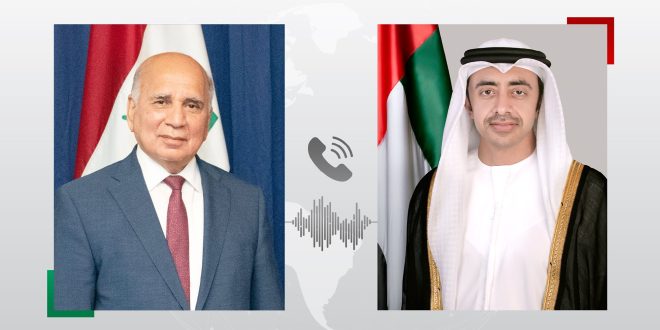 وأكد سمو الشيخ عبدالله بن زايد آل نهيان عمق العلاقات الأخوية بين البلدين، معرباً عن تمنياته لجمهورية العراق وشعبها الشقيق دوام الإستقرار والتقدم والازدهار.