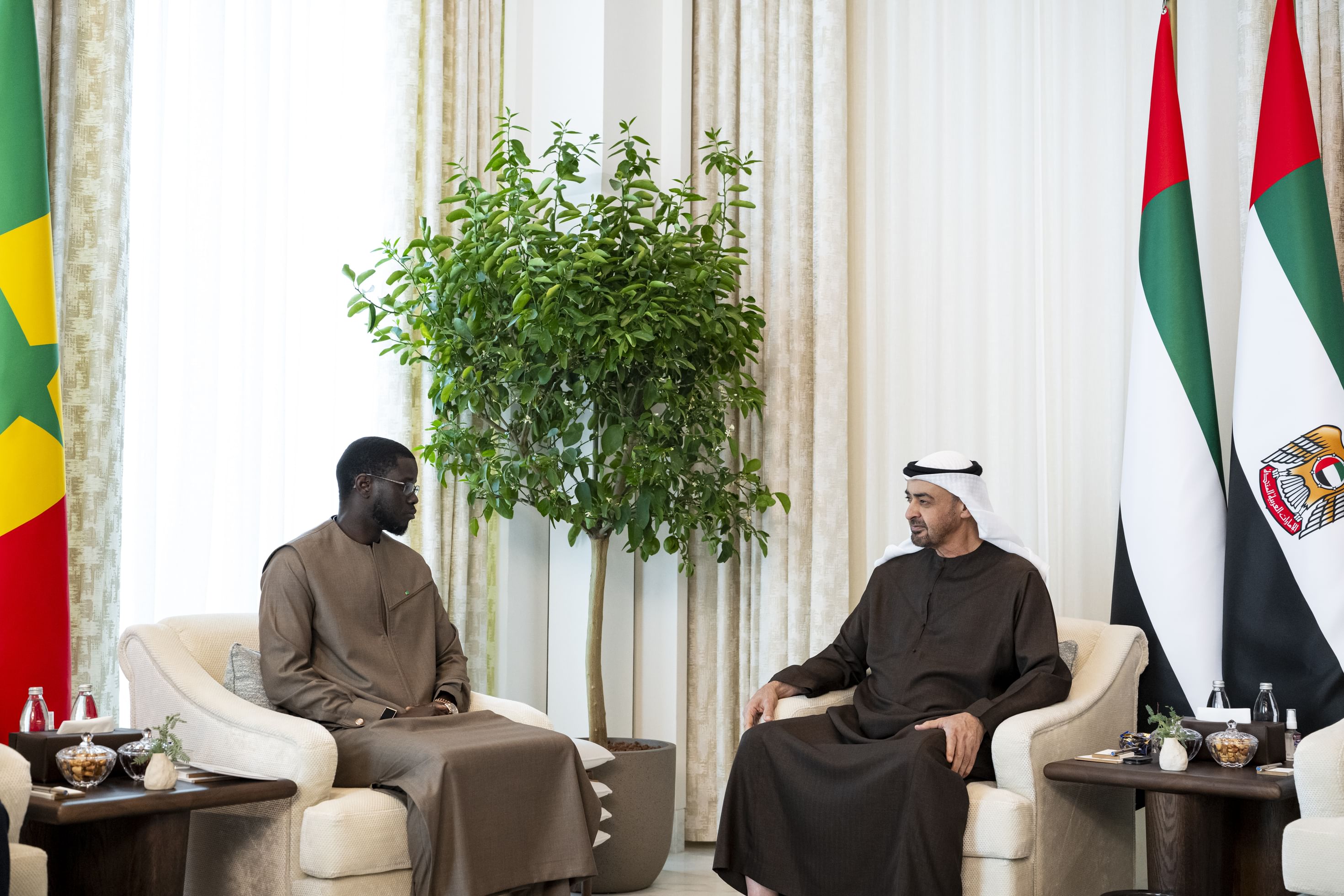 استقبل صاحب السمو الشيخ محمد بن زايد آل نهيان، رئيس الدولة، "حفظه الله"، اليوم، فخامة باسيرو ديوماي فاي، رئيس جمهورية السنغال، الذي يقوم بزيارة عمل إلى دولة الإمارات، شارك خلالها في فعاليات "أسبوع أبوظبي للاستدامة 2026".
