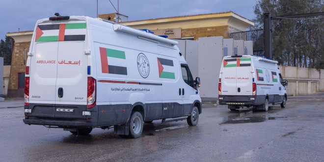 وتميّزت هذه القافلة بطابعها النوعي، إذ ضمّت كذلك 7 سيارات إسعاف وصهريج مياه واحد، بما يعزز قدرات الاستجابة الميدانية ويسهم في دعم الاحتياجات الأساسية، ضمن مسار الإسناد الإنساني الإماراتي المتواصل إلى داخل القطاع.