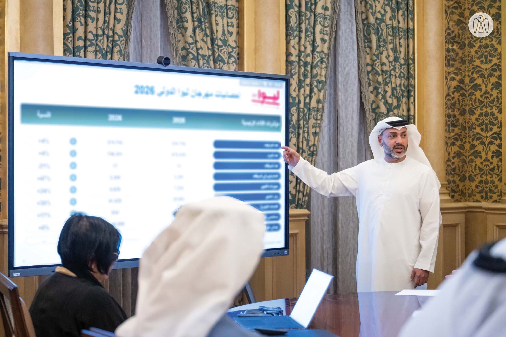 كما اطّلع سموّه على الخطة التنظيمية لمهرجان ليوا الدولي للموسم المقبل، حيث جرى استعراض الإطار العام للفعاليات والبرامج المقترحة، وآليات التطوير والبناء على النجاحات المتحققة. وتمَّ تحديد موعد إقامة المهرجان خلال الفترة من 11 ديسمبر 2026 حتى 2 يناير 2027، بما يعزِّز الجاذبية السياحية للمنطقة، ويوسِّع نطاق المشاركة المجتمعية.
