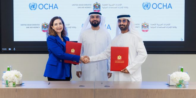 وقعت وكالة الإمارات للمساعدات الدولية، اتفاقية تعاون، مع مكتب الأمم المتحدة لتنسيق الشؤون الإنسانية "أوتشا"، تُسهم بموجبها دولة الإمارات بمبلغ 5 ملايين دولار أمريكي.