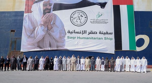 تنفيذاً لتوجيهات صاحب السمو الشيخ سعود بن صقر القاسمي، عضو المجلس الأعلى حاكم رأس الخيمة، وبمتابعة وحضور الشيخ أحمد بن صقر القاسمي، رئيس مجلس أمناء مؤسسة صقر بن محمد القاسمي للأعمال الخيرية والإنسانية، أبحرت اليوم "سفينة صقر الإنسانية" من ميناء رأس الخيمة، محمّلة بأكثر من 4000 طن من المساعدات الإنسانية والإغاثية، ومتجهة إلى ميناء العريش في جمهورية مصر العربية، تمهيداً لإدخالها إلى قطاع غزة.