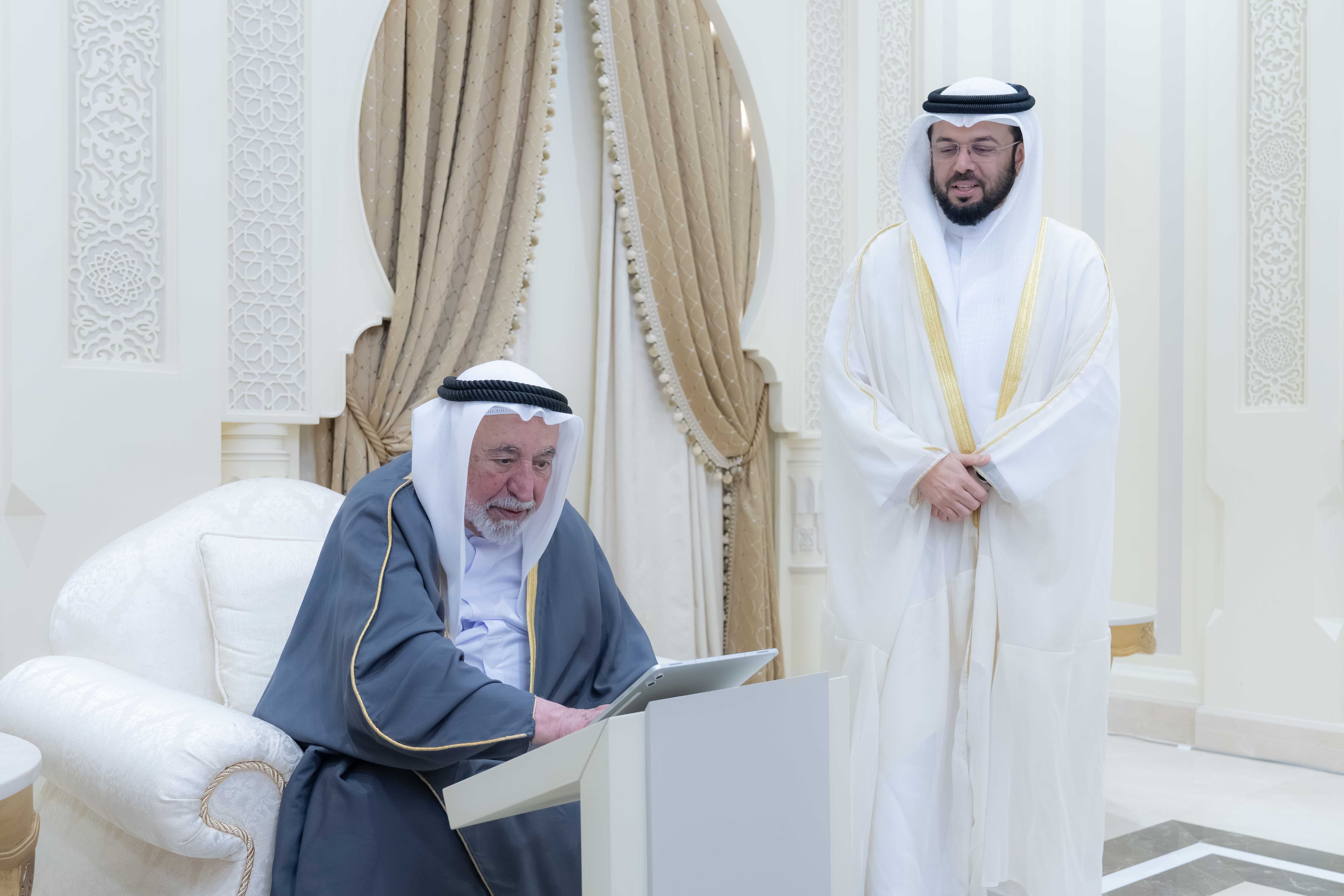 حاكم الشارقة يسلم أبناء الشيخ عبدالباسط محمد عبدالصمد شهادة شكر وتقدير