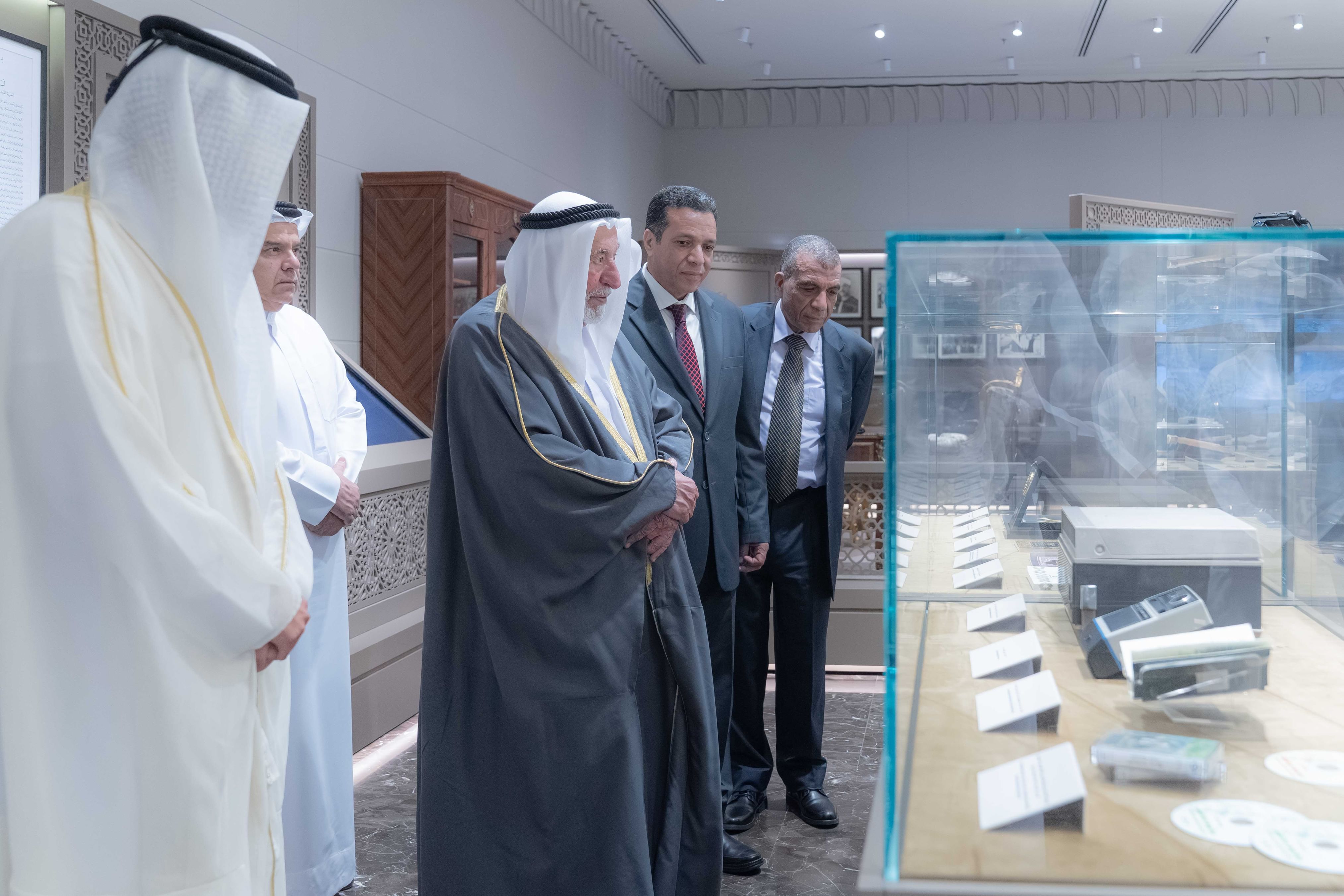 وسلّم صاحب السمو حاكم الشارقة أبناء فضيلة الشيخ عبدالباسط محمد عبدالصمد شهادة شكر وتقدير، وذلك لمنحهم مقتنيات والدهم النادرة إلى متحف مشاهير القرّاء في مجمع القرآن الكريم، مثمناً سموه مبادرتهم الكريمة التي ستبقى أثراً خالداً يخلد سيرة فضيلة الشيخ في خدمة كتاب الله تعالى. كما تسلم سموه هدية تذكارية من أبناء فضيلة الشيخ عبدالباسط عبدالصمد معربين عن امتنانهم وشكرهم للجهود التي يبذلها سموه في خدمة كتاب الله وأعلامه.