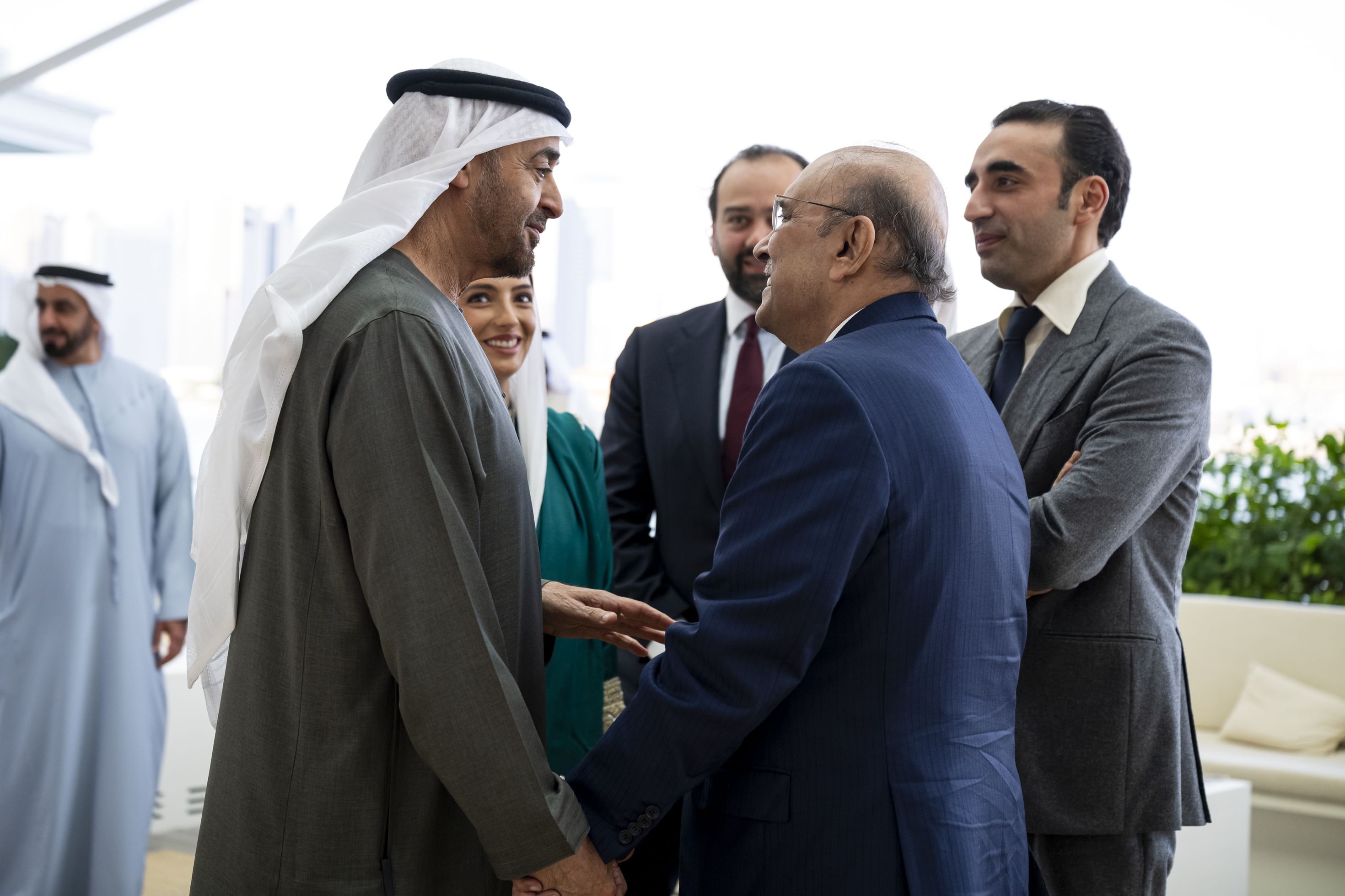 حضر اللقاء في قصر البحر سمو الشيخ خالد بن محمد بن زايد آل نهيان، ولي عهد أبوظبي، وسمو الشيخ سيف بن محمد آل نهيان، وسمو الشيخ سرور بن محمد آل نهيان، وسمو الشيخ نهيان بن زايد آل نهيان، رئيس مجلس أمناء مؤسسة زايد بن سلطان آل نهيان للأعمال الخيرية والإنسانية، والفريق سمو الشيخ سيف بن زايد آل نهيان، نائب رئيس مجلس الوزراء وزير الداخلية، وعدد من أعضاء الأسرة الحاكمة ومعالي الوزراء وكبار المسؤولين، إضافة إلى الوفد المرافق للرئيس الباكستاني.