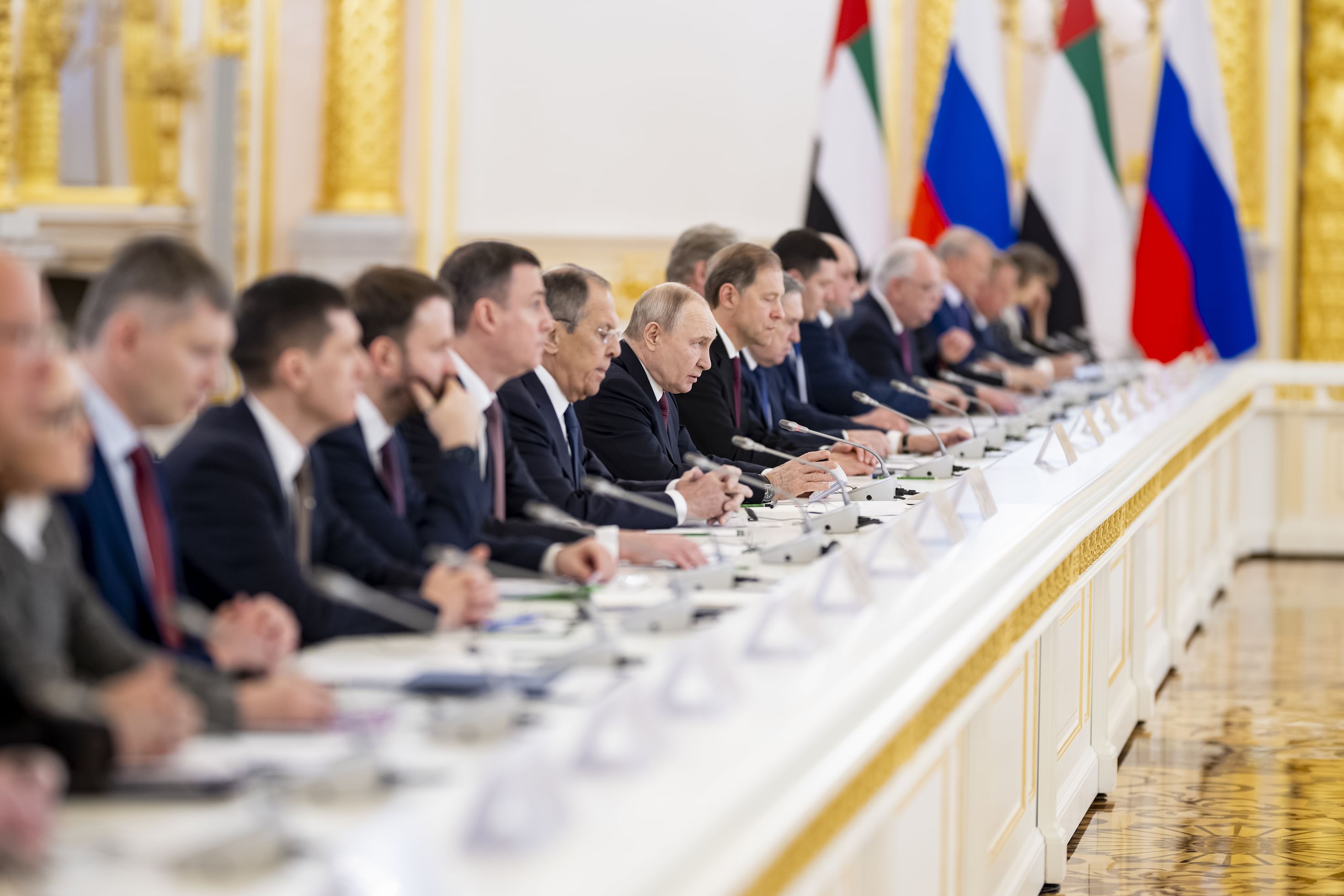 حضر المحادثات وفد صاحب السمو رئيس الدولة، الذي ضم سمو الشيخ حامد بن زايد آل نهيان، العضو المنتدب لمجلس إدارة جهاز أبوظبي للاستثمار، وسمو الشيخ حمدان بن محمد بن زايد آل نهيان، نائب رئيس ديوان الرئاسة للشؤون الخاصة، ومعالي الشيخ محمد بن حمد بن طحنون آل نهيان، مستشار صاحب السمو رئيس الدولة، وعدد من الوزراء وكبار المسؤولين، إلى جانب حضور عدد من الوزراء وكبار المسؤولين الروس.