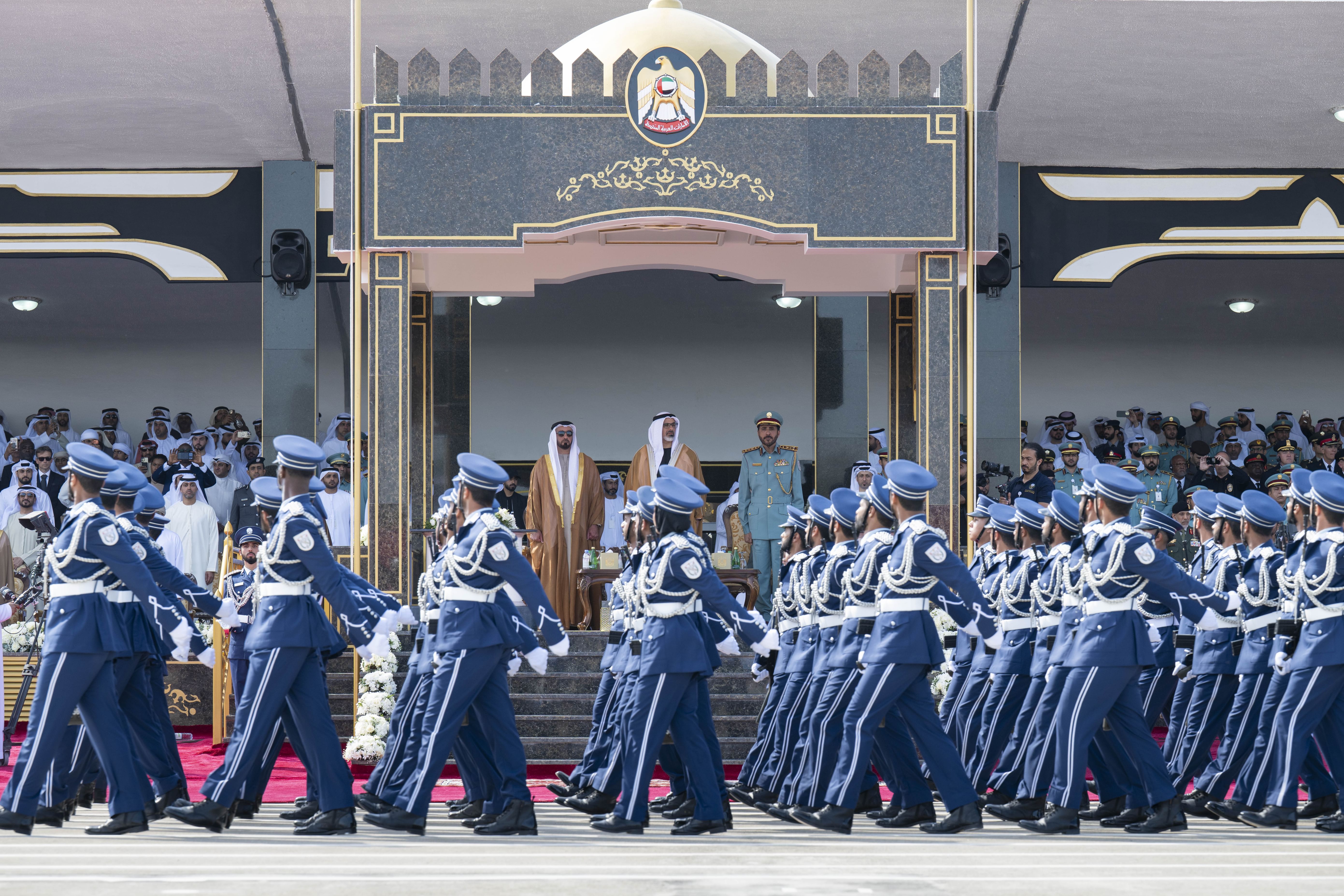 وبدأت مراسم الحفل بدخول طابور العرض إلى ساحة الميدان، حيث عزفت فرقة الشرطة الموسيقية السلام الوطني لدولة الإمارات العربية المتحدة، تلا ذلك عرض عسكري جسّد فيه الخريجون ما اكتسبوه من مهارات قيادية وانضباطية عالية خلال سنوات التدريب والتأهيل في كلية الشرطة.