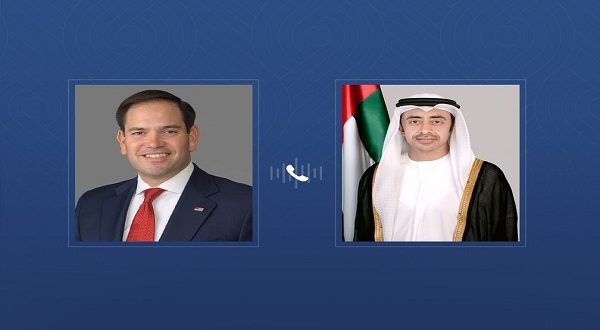 تلقى سمو الشيخ عبدالله بن زايد آل نهيان، نائب رئيس مجلس الوزراء وزير الخارجية، اتصالاً هاتفياً من معالي ماركو روبيو، وزير خارجية الولايات المتحدة الأمريكية، جرى خلاله بحث العلاقات الإستراتيجية الراسخة التي تجمع البلدين الصديقين، إلى جانب مناقشة مجمل التطورات الإقليمية والدولية ذات الاهتمام المشترك.