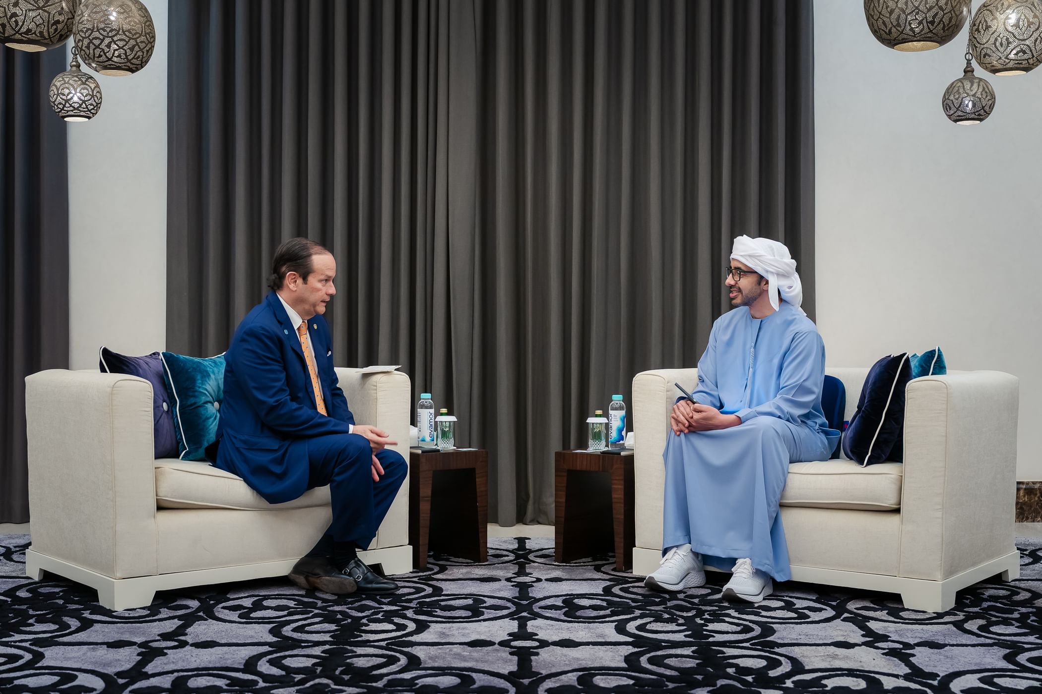 استقبل سمو الشيخ عبدالله بن زايد آل نهيان، نائب رئيس مجلس الوزراء وزير الخارجية، معالي هافيير مارتينيز أتشا، وزير العلاقات الخارجية في جمهورية بنما، على هامش مشاركة معاليه في القمة العالمية للحكومات، حيث تم بحث مختلف أوجه التعاون بين البلدين.