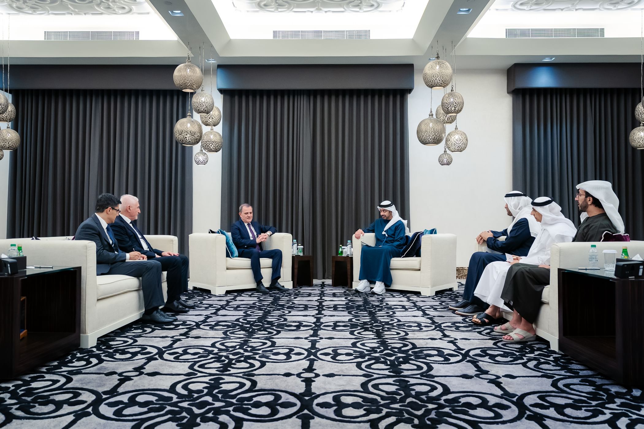 استقبل سمو الشيخ عبدالله بن زايد آل نهيان نائب رئيس مجلس الوزراء وزير الخارجية، معالي جيهون بيراموف، وزير خارجية جمهورية أذربيجان، على هامش مشاركة معاليه في أعمال القمة العالمية للحكومات.