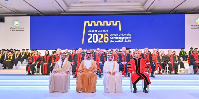 شهد صاحب السمو الشيخ حميد بن راشد النعيمي، عضو المجلس الأعلى حاكم عجمان، وسمو الشيخ عمار بن حميد النعيمي، ولي عهد عجمان، رئيس المجلس التنفيذي، رئيس مجلس أمناء جامعة عجمان، حفل تخريج الفوج الأول "دفعة الإخوة الإماراتية الكويتية 2026" من طلاب جامعة عجمان، الذين تجاوز عددهم 300 خريج من مختلف الكليات، في مركز الشيخ زايد للمؤتمرات والمعارض بمقر الجامعة.