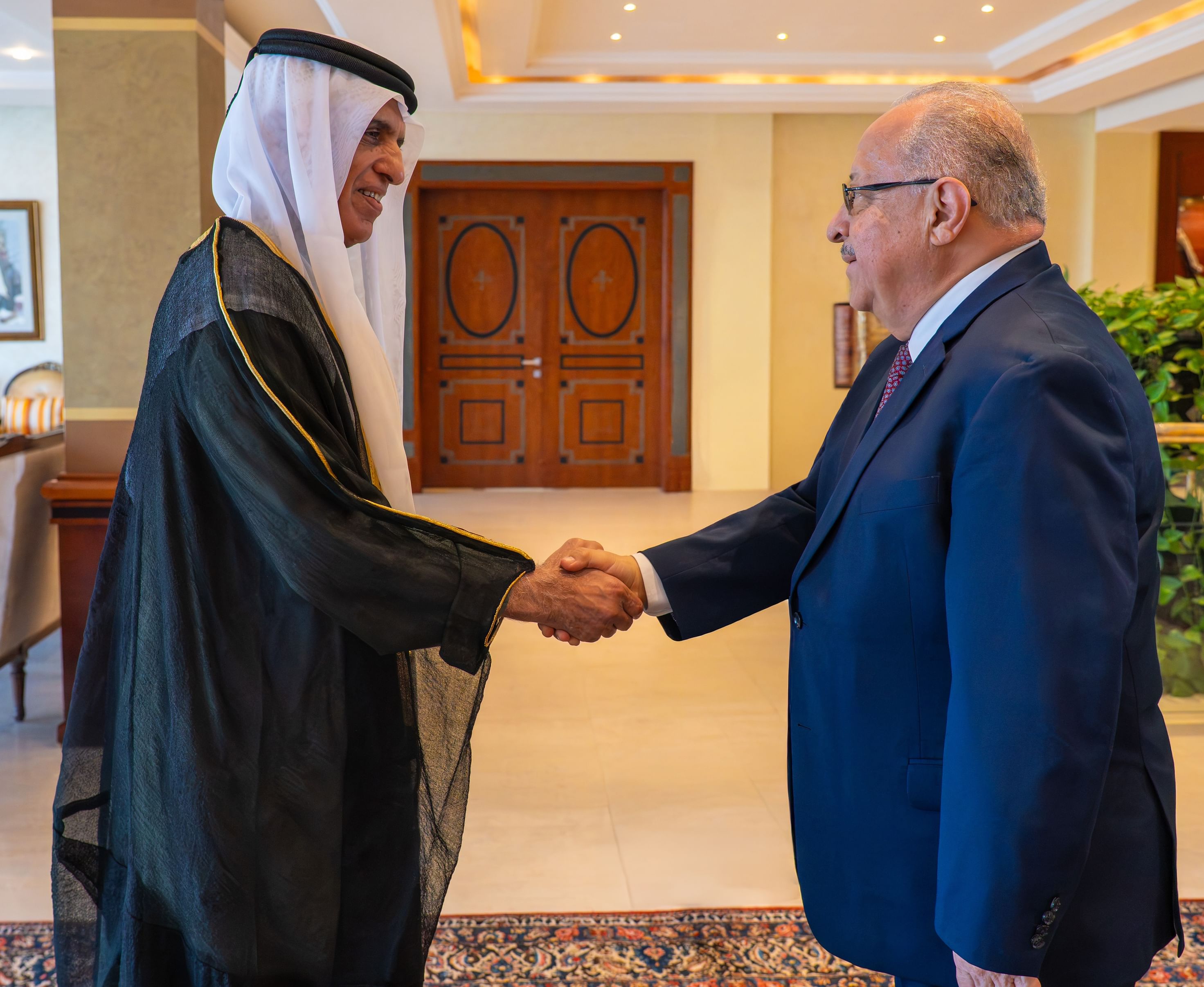 ورحّب سموّه بمعالي الوزير والوفد المرافق، وبحث معه سبل تعزيز وتدعيم علاقات التعاون بما يخدم المصالح المشتركة في مختلف المجالات، لا سيما الاقتصادية، والتجارية، والاستثمارية، بما يسهم في تحقيق المزيد من الازدهار، ودعم مسارات التنمية المستدامة لدى الجانبين.