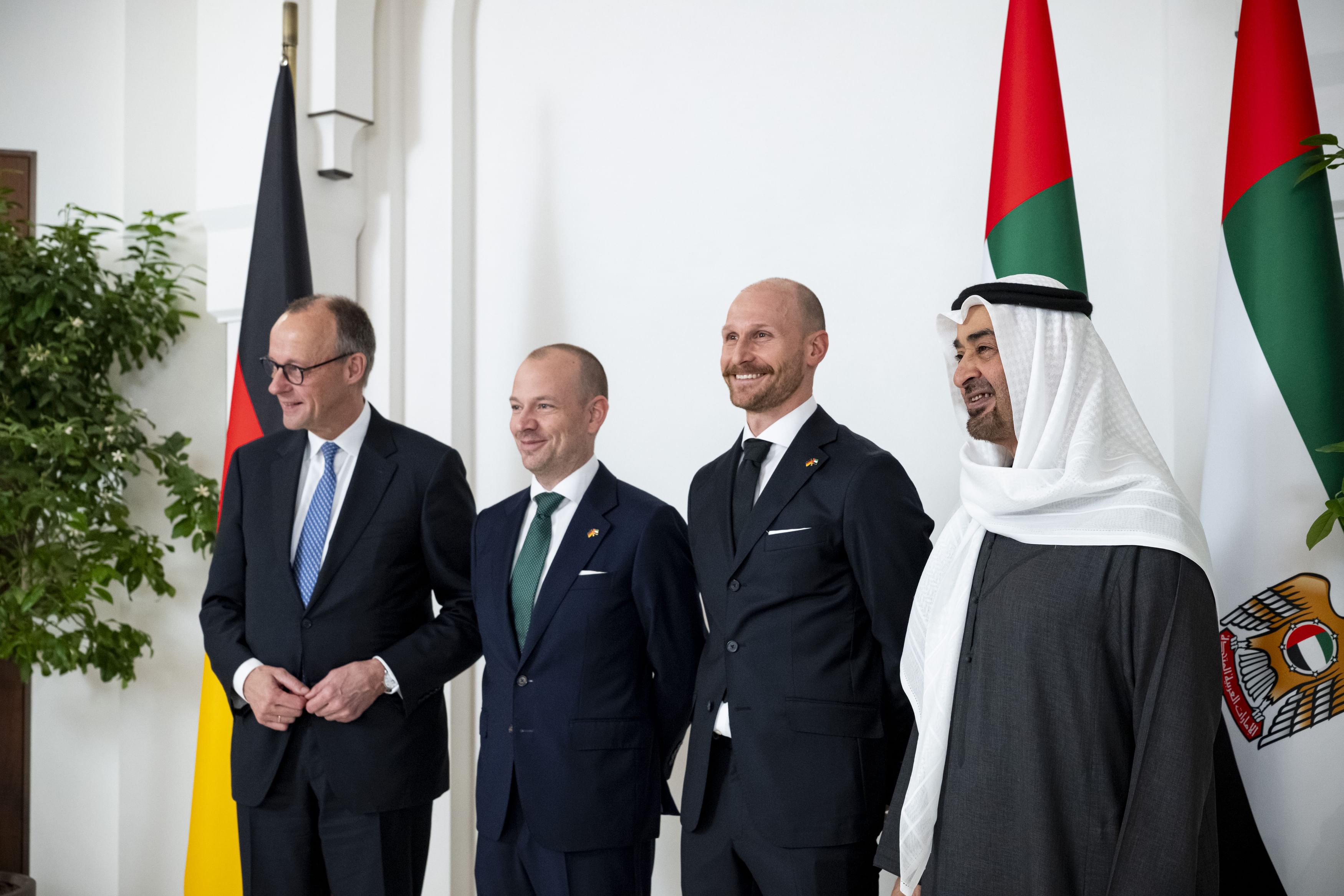بحث صاحب السمو الشيخ محمد بن زايد آل نهيان، رئيس الدولة "حفظه الله"، ومعالي فريدريش ميرتس، مستشار جمهورية ألمانيا الاتحادية، اليوم، مختلف مسارات التعاون والعمل المشترك بين دولة الإمارات وألمانيا، وسبل تعزيزها بما يخدم المصالح المشتركة ويدعم الأولويات التنموية للبلدين.
