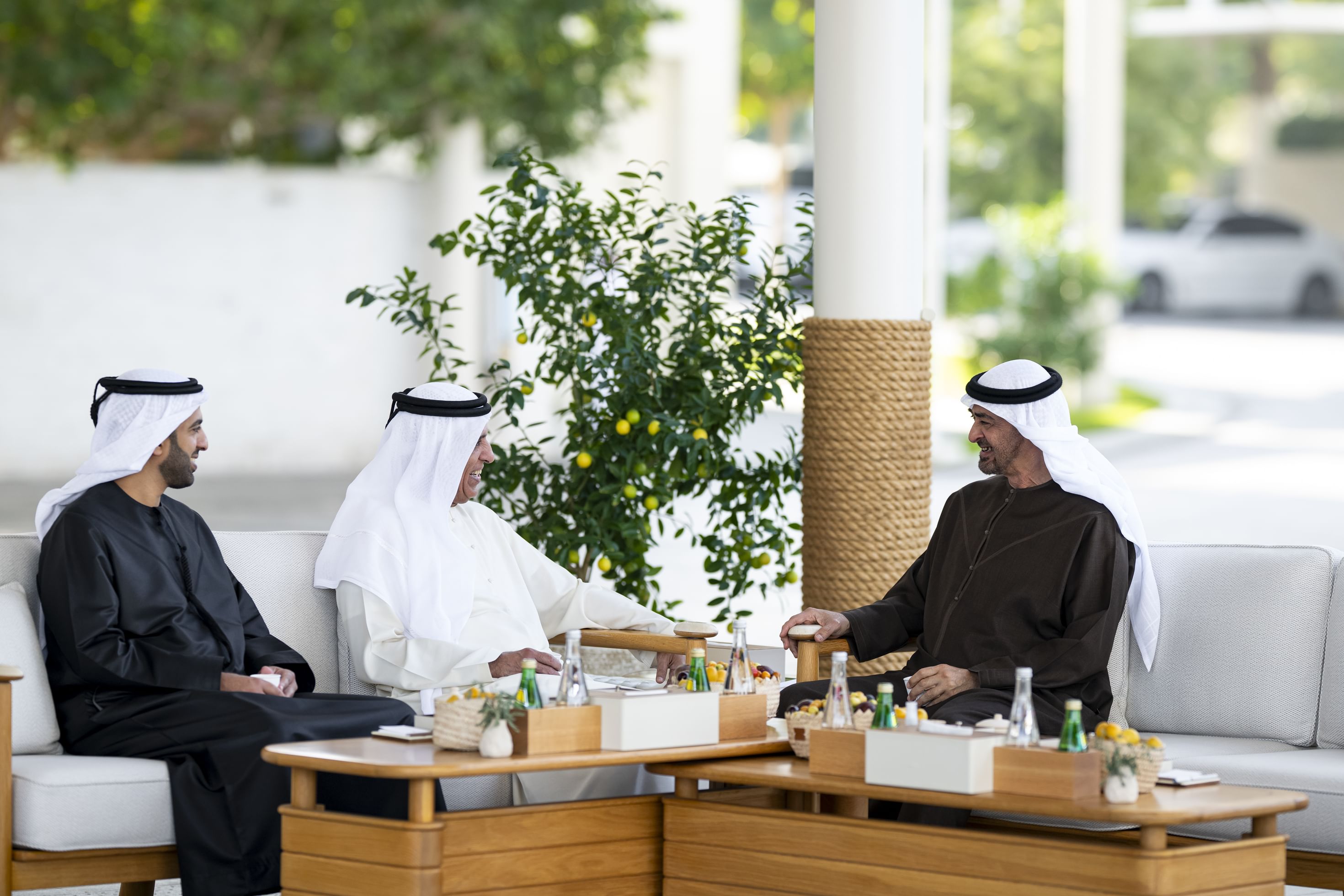 استقبل صاحب السمو الشيخ محمد بن زايد آل نهيان، رئيس الدولة "حفظه الله"، اليوم أخاه صاحب السمو الشيخ سعود بن صقر القاسمي، عضو المجلس الأعلى، حاكم رأس الخيمة، يرافقه سمو الشيخ محمد بن سعود بن صقر القاسمي، ولي عهد رأس الخيمة، وذلك في قصر الشاطئ بأبوظبي.