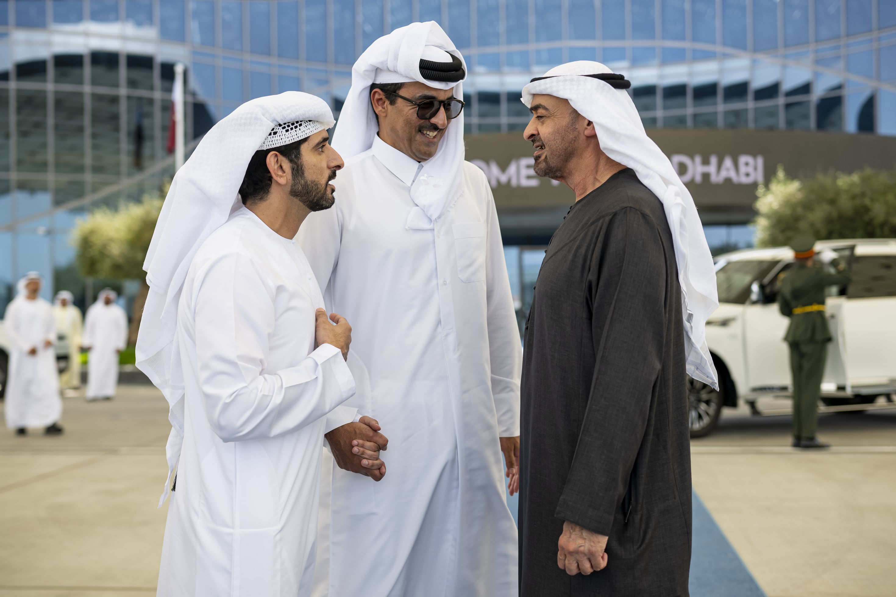 كما حضر سيف بن زايد آل نهيان نائب رئيس مجلس الوزراء وزير الداخلية، وذياب بن محمد بن زايد آل نهيان نائب رئيس ديوان الرئاسة للشؤون التنموية وأسر الشهداء، إلى جانب عدد من كبار المسؤولين، فيما ضم الوفد القطري عدداً من الشيوخ وكبار المسؤولين.