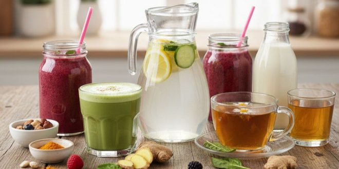كشفت دراسات أن تناول المشروبات الطبيعية كعصائر الفواكه والخضروات الغنية بالمغنيسيوم والكالسيوم، ومشروبات "البروبيوتيك"، وحليب المكسرات، يساهم بفعالية في خفض مستويات التوتر والقلق، كما يلعب الشاي (البابونغ، الأخضر، والماتشا) والماء دوراً محورياً في تعزيز الصحة النفسية ومنع الجفاف المسبب للقلق، مع إضافات صحية كخل التفاح والزنجبيل والكركم.