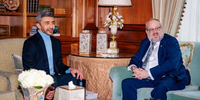 بحث سمو الشيخ عبدالله بن زايد آل نهيان، نائب رئيس مجلس الوزراء وزير الخارجية، مع سعادة السفير الحاخام يهودا كابلون، المبعوث الخاص للولايات المتحدة الأمريكية لمراقبة ومكافحة معاداة السامية، العلاقات الاستراتيجية بين دولة الإمارات والولايات المتحدة الأمريكية، إلى جانب استعراض عدد من القضايا ذات الاهتمام المشترك، وفي مقدمتها جهود نشر قيم الحوار والتسامح، وتعزيز ثقافة التعايش، ومواجهة خطاب الكراهية والتطرف بكافة أشكالهما.