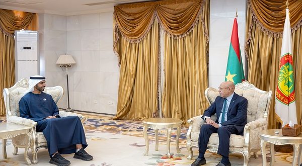 ونقل معاليه إلى فخامته تحيات صاحب السمو الشيخ محمد بن زايد آل نهيان رئيس الدولة "حفظه الله"، وصاحب السمو الشيخ محمد بن راشد آل مكتوم نائب رئيس الدولة رئيس مجلس الوزراء حاكم دبي "رعاه الله"، وسمو الشيخ منصور بن زايد آل نهيان نائب رئيس الدولة نائب رئيس مجلس الوزراء رئيس ديوان الرئاسة، وتمنياتهم لموريتانيا وشعبها بمزيد من التقدم والازدهار.