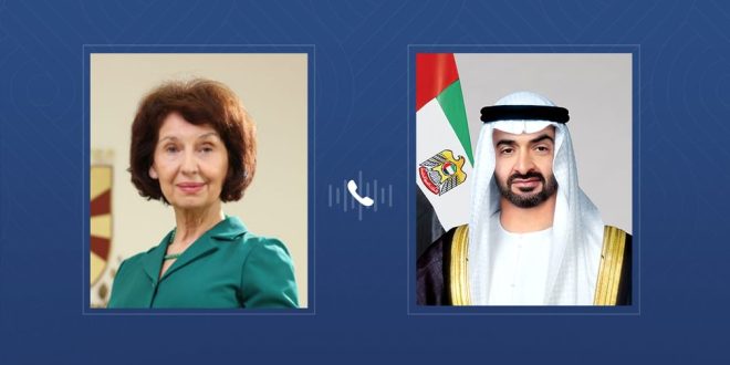 من جانبه أعرب صاحب السمو رئيس الدولة عن شكره لفخامة الرئيسة غوردانا سيليا لموقف شمال مقدونيا الداعم لدولة الإمارات.