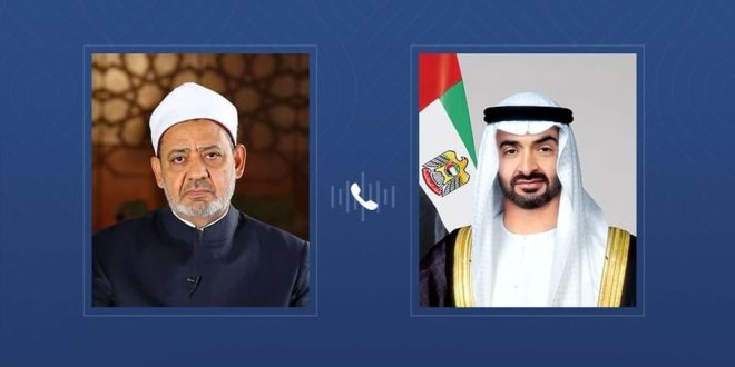 تلقى صاحب السمو الشيخ محمد بن زايد آل نهيان رئيس الدولة "حفظه الله" اليوم اتصالاً هاتفياً من فضيلة الإمام الأكبر الأستاذ الدكتور أحمد الطيب شيخ الأزهر الشريف، عبر خلاله عن استنكاره الاعتداءات الإيرانية السافرة على أراضي دولة الإمارات وعدد من الدول الشقيقة وما تمثله هذه الاعتداءات من انتهاك لسيادة الدولة وقواعد القانون الدولي ومبادئ حسن الجوار.