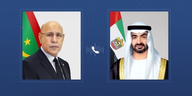 تلقى صاحب السمو الشيخ محمد بن زايد آل نهيان رئيس الدولة "حفظه الله" اليوم الخميس 12 مارس 2026، اتصالاً هاتفياً من فخامة محمد ولد الشيخ الغزواني رئيس الجمهورية الإسلامية الموريتانية الشقيقة، بحثا خلاله التطورات العسكرية والأمنية التي تشهدها المنطقة وتداعياتها الخطيرة على الأمن والسلم الإقليميين.