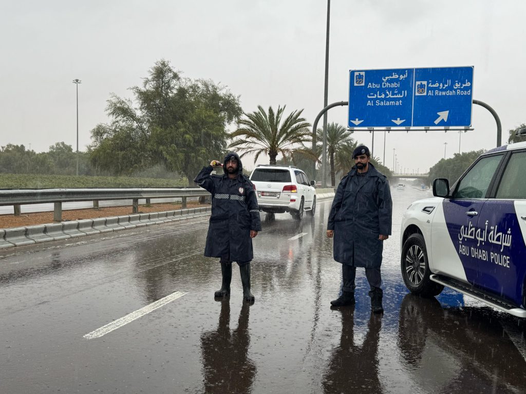 تواصل شرطة أبوظبي جهودها الميدانية المكثفة لضمان سلامة المجتمع خلال هطول الأمطار الغزيرة والتقلبات الجوية، من خلال منظومة متكاملة من الإجراءات الوقائية والاستباقية وذلك في إطار حرصها على تعزيز السلامة المرورية وحماية الأرواح والممتلكات.