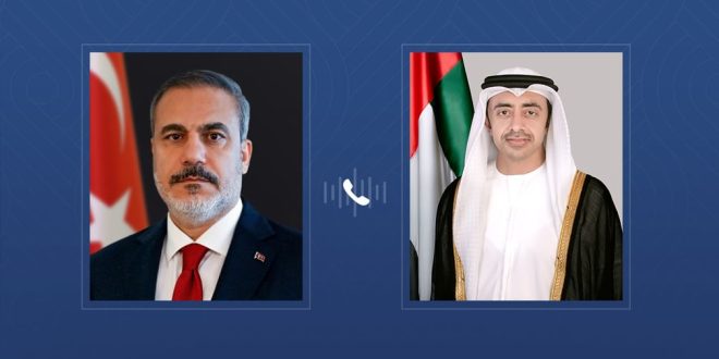 تقدم سمو الشيخ عبدالله بن زايد آل نهيان، نائب رئيس مجلس الوزراء وزير الخارجية، خلال اتصال هاتفي مع معالي هاكان فيدان وزير خارجية الجمهورية التركية الصديقة بخالص التعازي إلى الجمهورية التركية الصديقة باستشهاد الرائد سنان تاشتكين من القوات المشتركة القطرية التركية، وكل من سليمان جيمرا كهرامان وإسماعيل أناس جان من طاقم وأفراد طائرة مروحية إثر تعرضها لعطل فني أدى إلى سقوطها في المياه الإقليمية لدولة قطر.