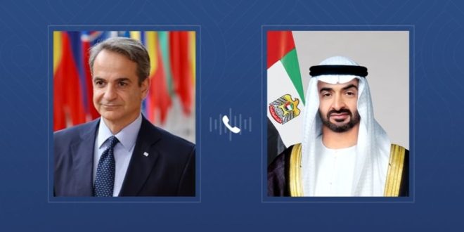 تلقى صاحب السمو الشيخ محمد بن زايد آل نهيان رئيس الدولة "حفظه الله" يوم الثلاثاء، اتصالاً هاتفياً من معالي كيرياكوس ميتسوتاكيس رئيس وزراء جمهورية اليونان.