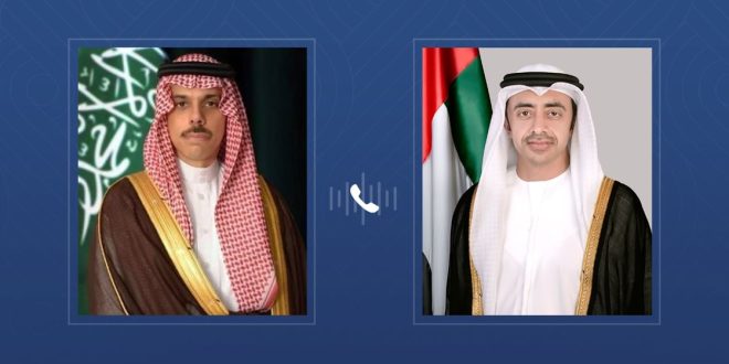 تلقى سمو الشيخ عبدالله بن زايد آل نهيان، نائب رئيس مجلس الوزراء وزير الخارجية، اتصالاً هاتفياً من صاحب السمو الأمير فيصل بن فرحان بن عبدالله، وزير خارجية المملكة العربية السعودية الشقيقة.