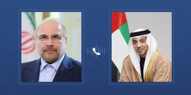 جرى اتصال هاتفي بين سمو الشيخ منصور بن زايد آل نهيان نائب رئيس الدولة نائب رئيس مجلس الوزراء رئيس ديوان الرئاسة، ومحمد باقر قاليباف، رئيس مجلس الشورى في الجمهورية الإسلامية الإيرانية بحث خلاله الطرفان التطورات الإقليمية وسبل خفض التصعيد في المنطقة.