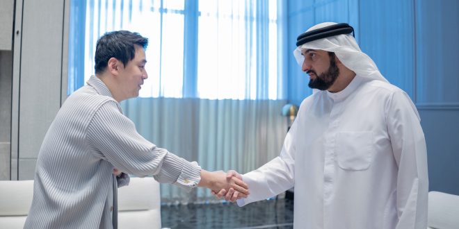 التقى سموّ الشيخ أحمد بن محمد بن راشد آل مكتوم، النائب الثاني لحاكم دبي، رئيس مجلس دبي للإعلام، تشو سونغ هاي، الرئيس التنفيذي لشركة “جالاكسي إم إي” والشريك المؤسس لشركة “جالاكسي كوربوريشن”.