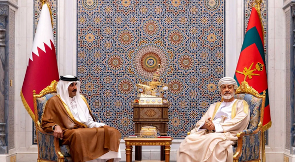 بحث صاحب الجلالة السُّلطان هيثم بن طارق سلطان عمان، وصاحب السّمو الشيخ تميم بن حمد آل ثاني أمير دولة قطر، اليوم الخميس، 16 أبريل 2026، مستجدات الأوضاع في المنطقة وتداعياتها على أمن واستقرار الدول، وسلامة شعوبها، إلى جانب تأثيراتها على المصالح الاقتصادية، خلال لقائهما في مسقط.