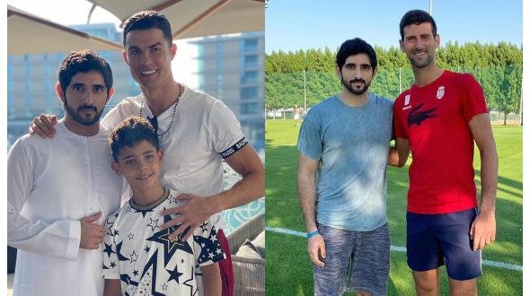 Footballing superstar Cristiano Ronaldo and tennis legend Novak Djokavic took time out from their sunshine holidays in the emirate to meet with Sheikh Hamdan bin Mohammed bin Rashid Al Maktoum, Crown Prince of Dubai.