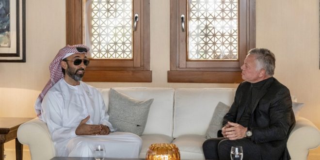 HM King Abdullah II of Jordan on Saturday received a United Arab Emirates delegation headed by H.H. Sheikh Tahnoun bin Zayed Al Nahyan, National Security Adviser.