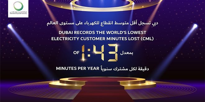 Dubai Electricity and Water Authority (DEWA) has achieved a new world record in electricity Customer Minutes Lost (CML) per year. Dubai recorded 1.43 minutes per customer in 2021, compared to around 15 minutes recorded by leading utility companies in the European Union.