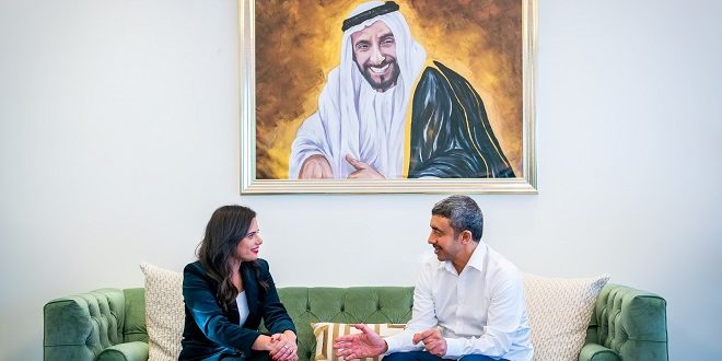 H.H. Sheikh Abdullah bin Zayed Al Nahyan, Minister of Foreign Affairs and International Cooperation, met with the Minister of the Interior of Israel, Ayelet Shaked, during his current official visit to Tel Aviv to review cooperation relations between the two countries in several fields, with emphasis on the defence field.