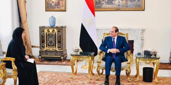 The message was delivered to the Egyptian President by Mariam Al Kaabi, UAE Ambassador to the Arab Republic of Egypt and Permanent Representative of the UAE to the Arab League, in the presence of Sameh Shoukry, Minister of Foreign Affairs of Egypt.