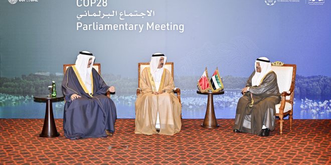 Saqr Ghobash, Speaker of the Federal National Council (FNC) met with Ahmed bin Salman Al-Musallam, Speaker of the Council of Representatives, and Ali bin Saleh Al Saleh, Chairman of Bahrain’s Consultative Council (Shura Council), on the sidelines of the parliamentary meeting and the 28th UN Climate Change Conference (COP28), which is being hosted at Expo City Dubai.