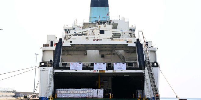 The fourth UAE aid ship carrying 5,340 tonnes of humanitarian supplies has set sail today for the city of Al Arish, Egypt, destined for the Gaza Strip, as part of Operation “Chivalrous Knight 3” to support the Palestinian people in the Strip.