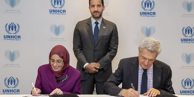In the presence of H.H. Sheikh Sultan bin Ahmed bin Sultan Al Qasimi, Deputy Ruler of Sharjah and Humanitarian Envoy of The Big Heart Foundation (TBHF), the United Nations High Commissioner for Refugees (UNHCR), Filippo Grandi, announced the approval by H.H. Sheikha Jawaher bint Mohammed Al Qasimi, wife of His Highness the Ruler of Sharjah, of UNHCR’s request to renew her title as Eminent Advocate for Refugee Children for the next two years.