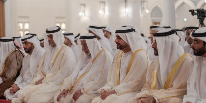 Joining Their Highnesses in prayer were Sheikh Mohammed bin Saud Al Qasimi, Chairman of the Sharjah Finance Department; Sheikh Khaled bin Abdullah Al Qasimi, Chairman of the Sharjah Ports, Customs and Free Zones Authority; Sheikh Dr Salem bin Abdulrahman Al Qasimi, Chairman of the Sharjah Ruler’s Office; Sheikh Mohammed bin Humaid Al Qasimi, Chairman of the Department of Statistics and Community Development; Sheikh Majid bin Sultan Al Qasimi, Chairman of the Districts Affairs Department; Sheikh Saud bin Sultan bin Mohammed Al Qasimi, Director General of the Sharjah Digital Department; Sheikh Saif bin Mohammed Al Qasimi, Assistant Secretary-General of the Arab Parliament for the Child; along with a number of sheikhs, heads of local and federal departments and institutions.